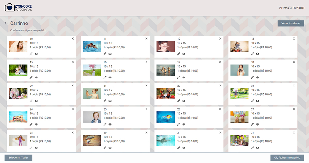 Na área de administração é informado através de relatório os pedidos realizados no site. O fotógrafo também recebe um alerta de pedidos em seu e-mail informando sobre o recebimento de um novo pedido.