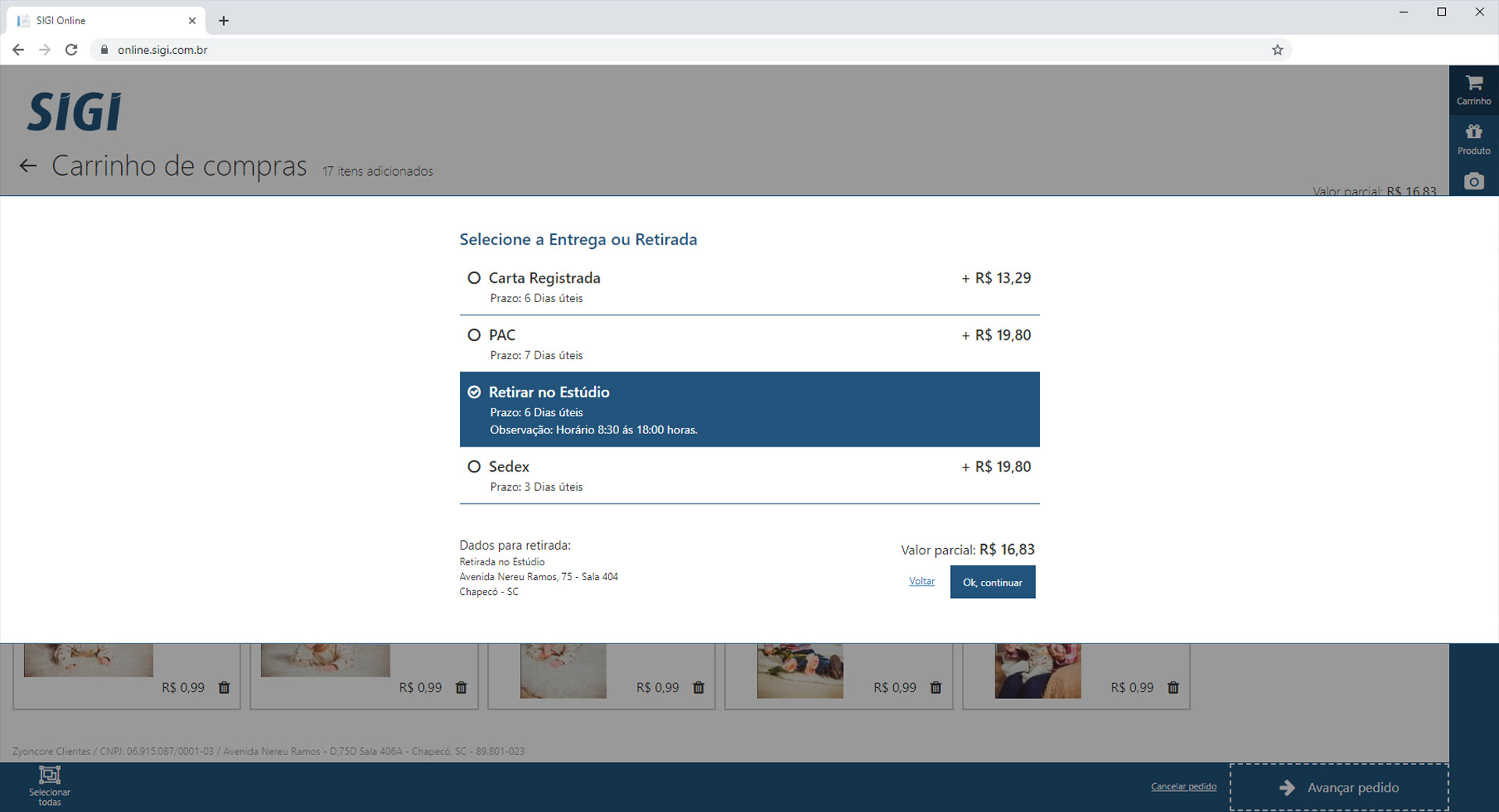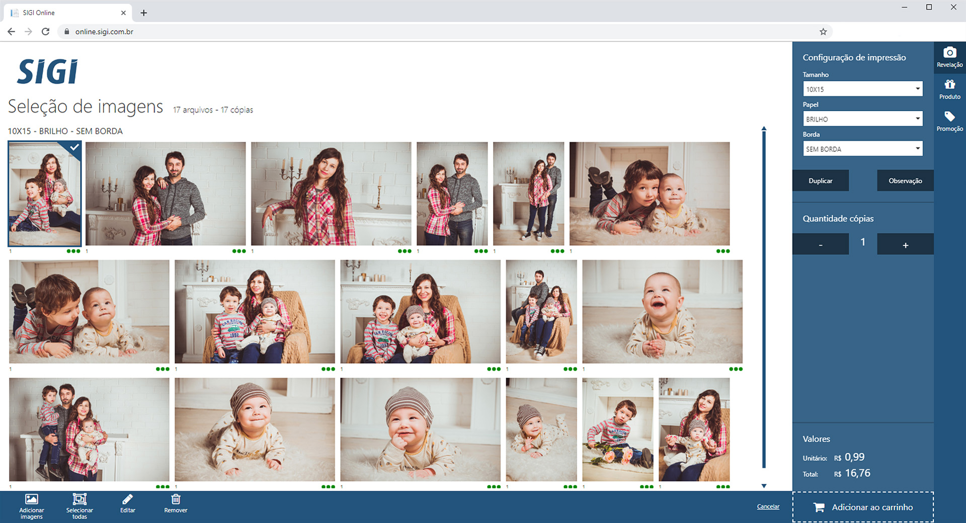 O sistema SIGI ON-LINE é um software para o envio de imagens digitais pelo site para revelação / Impressão.